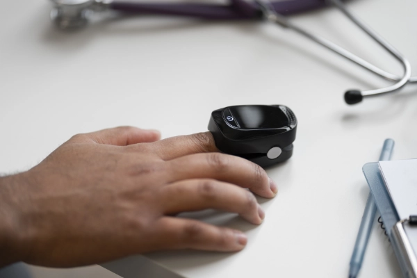 Pulzní oxymetr měří saturaci kyslíku v krvi a srdeční frekvenci. Tento malý, neinvazivní přístroj nám poskytuje důležité informace o tom, jak efektivně tělo pacienta distribuuje kyslík, což je zvláště důležité při onemocněních dýchacího ústrojí nebo srdečních problémech.
